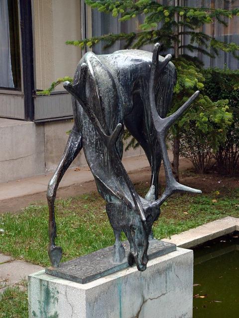 Statue of drinking stag